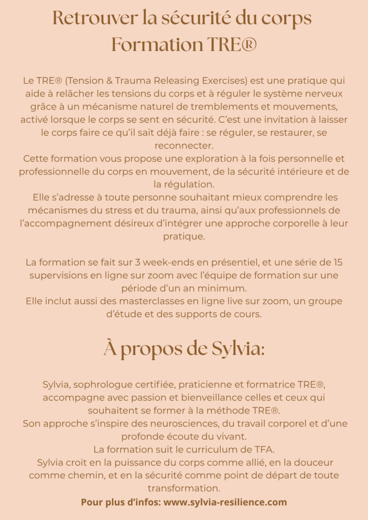 Pour les infos & détails de la formation: www.sylvia-resilience.com